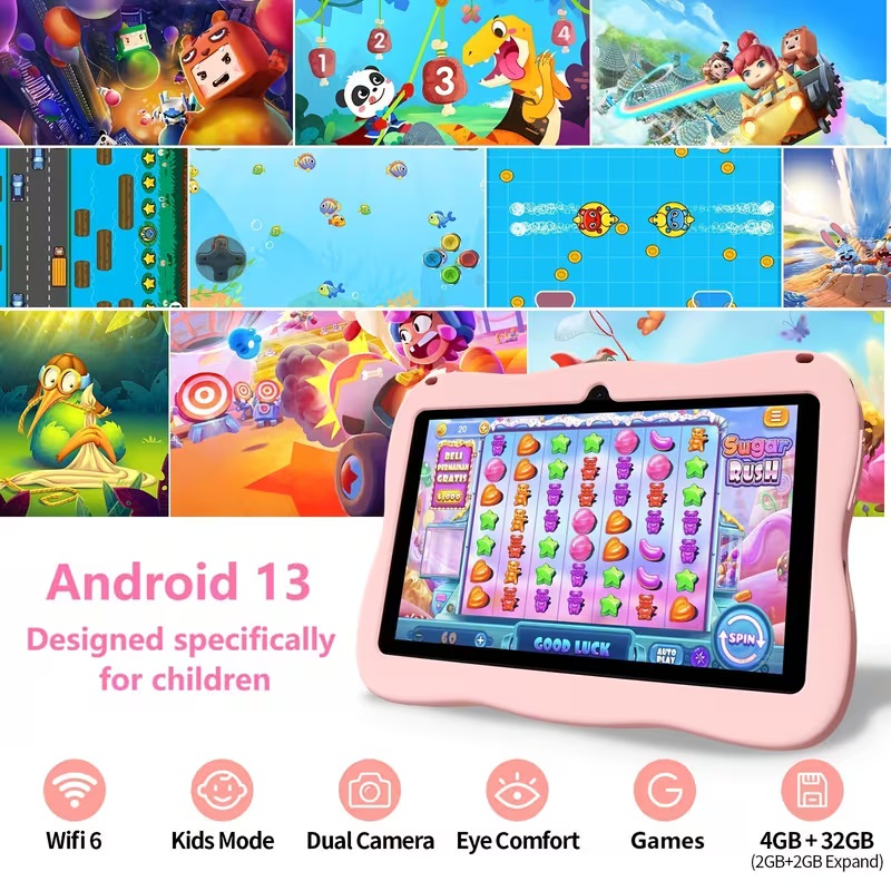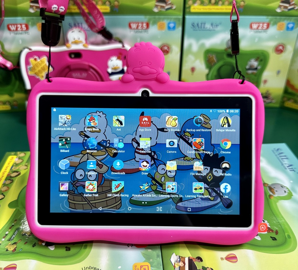 Product Title: Sail Air Kidsβ Smart Learning Tablet β [7"/8"] HD Display β Pre-loaded Educational Apps & Rugged Case Product Description: Ignite your childβs curiosity with the Sail Air Kidsβ Smart Tablet, the perfect blend of education and entertainment. Designed specifically for young learners aged 3β12, this tablet comes pre-installed with the iWawa Educational Suite, featuring thousands of offline games, math puzzles, and drawing tools that make learning feel like play. Built to survive the "oops" moments, it features an explosion-proof toughened glass screen and a soft-grip, shock-absorbing silicone case. With advanced parental controls, you can manage screen time and filter content, giving you total peace of mind while your child explores. Key Features: Safe & Durable: Rugged, drop-resistant build with eye-protection screen technology. Learning First: Pre-loaded with premium educational content; no constant Wi-Fi needed for basic apps. Dual Camera: Perfect for kid-friendly photography and video calls with family. Expandable Memory: [32GB/128GB] internal storage, expandable via microSD for all their favorite videos. Whatβs in the Box: 1x Sail Air Tablet 1x Protective Silicone Case 1x Charging Cable & Adapter